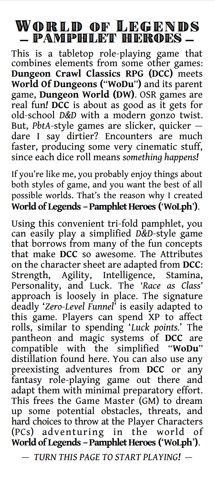 | Tags | dcc, dungeon-world, No AI, One-page, one-sheet, pamphlet, PbtA, wodu, world-of-dungeons |